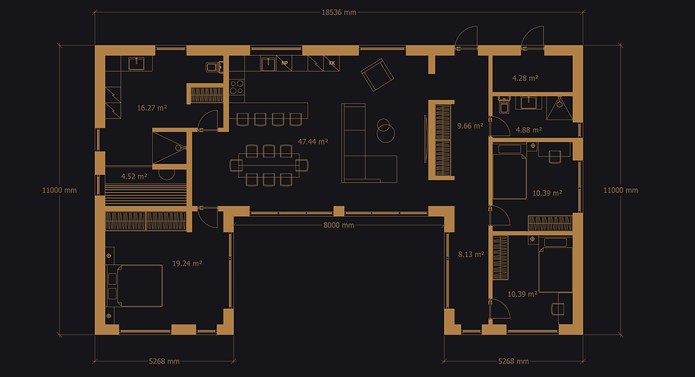 Living room/kitchen - 47.44 m²